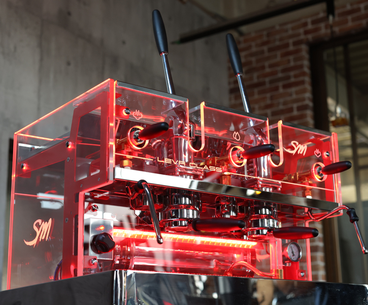ブランドの象徴ともいえる「レバーマシン」は、まさにイタリア文化そのものを体現している。