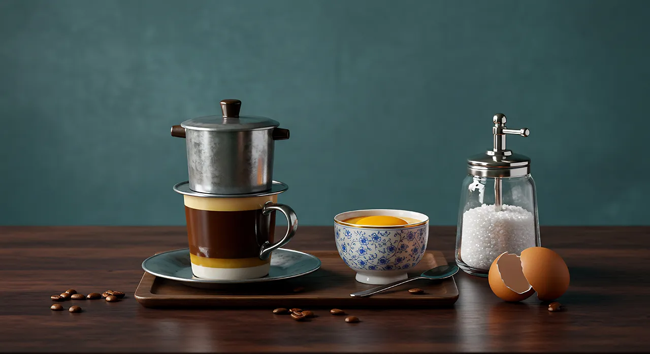 卵黄+砂糖またはコンデンスミルクを泡立てたクリームを、おもにロブスタ種で淹れた濃いコーヒーにのせる甘い一杯。