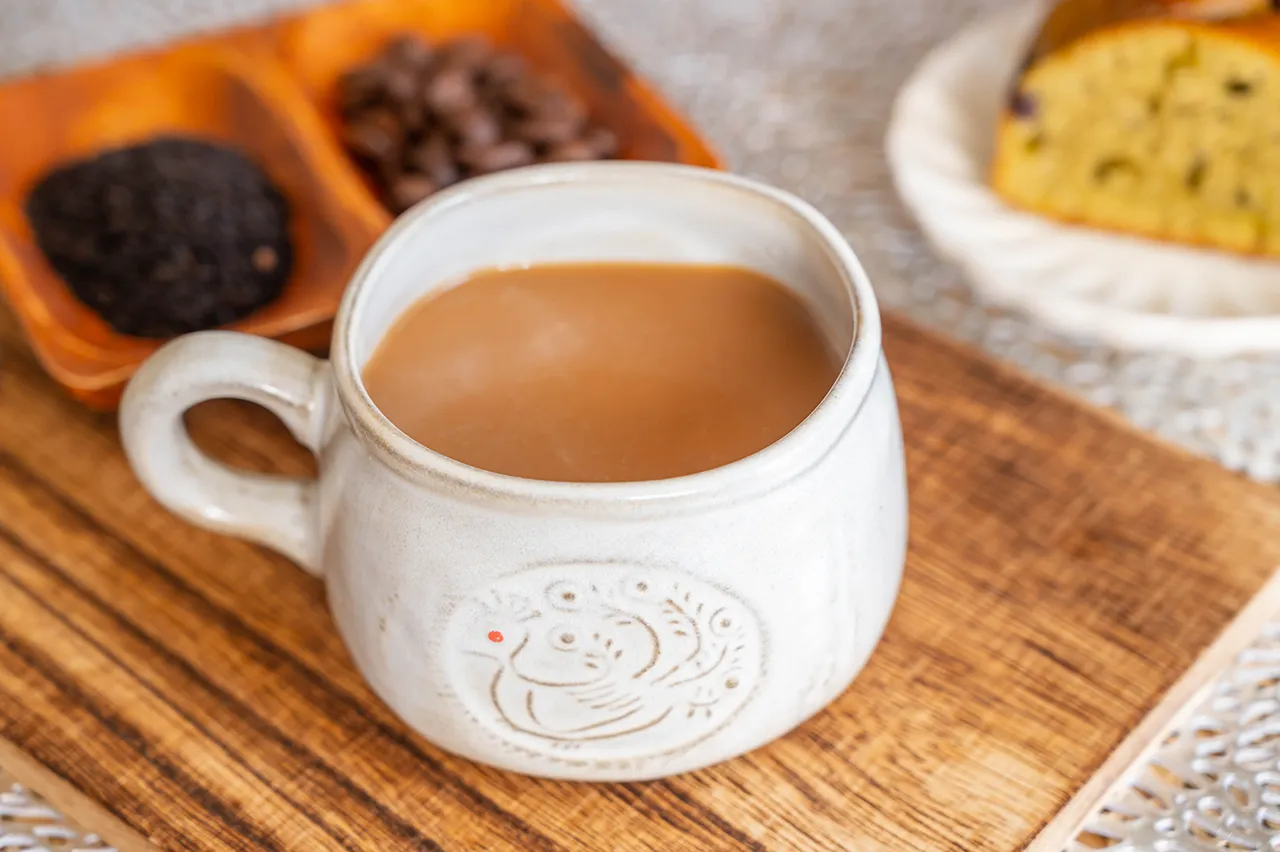 それぞれのコクと香りが二重に立って、濃厚なエバポレイテッドミルクが苦味の角を丸くしてくれる一杯。